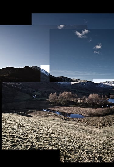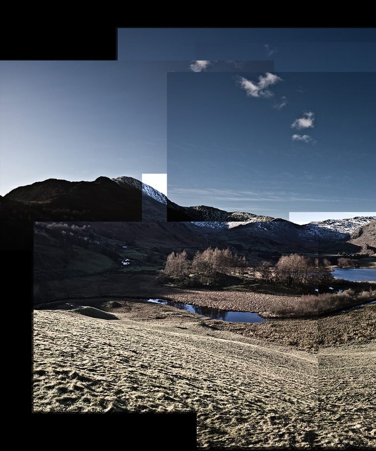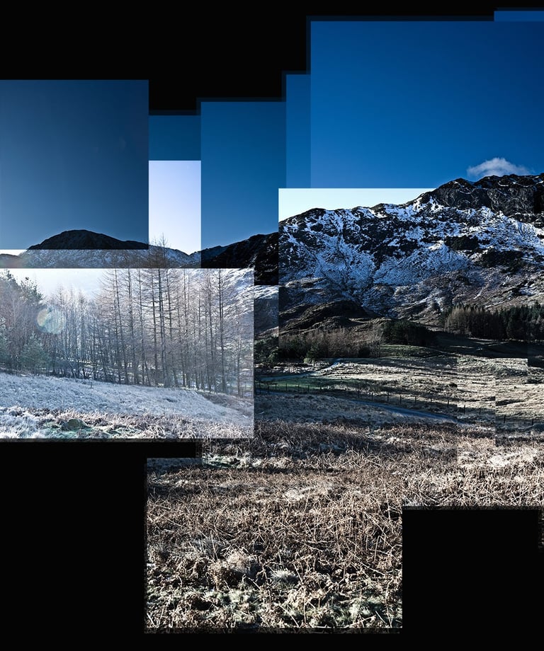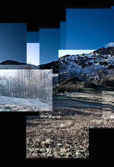 Through Joiners, these landscapes become more than vistas — they become stories. Dozens of hand-prepared images are woven together, revealing the shifting moods of mountains, the quiet dignity of farmsteads, and the untamed beauty of rivers carving their way through wilderness. Each piece is not a single moment, but a layered evocation of time, place, and spirit.